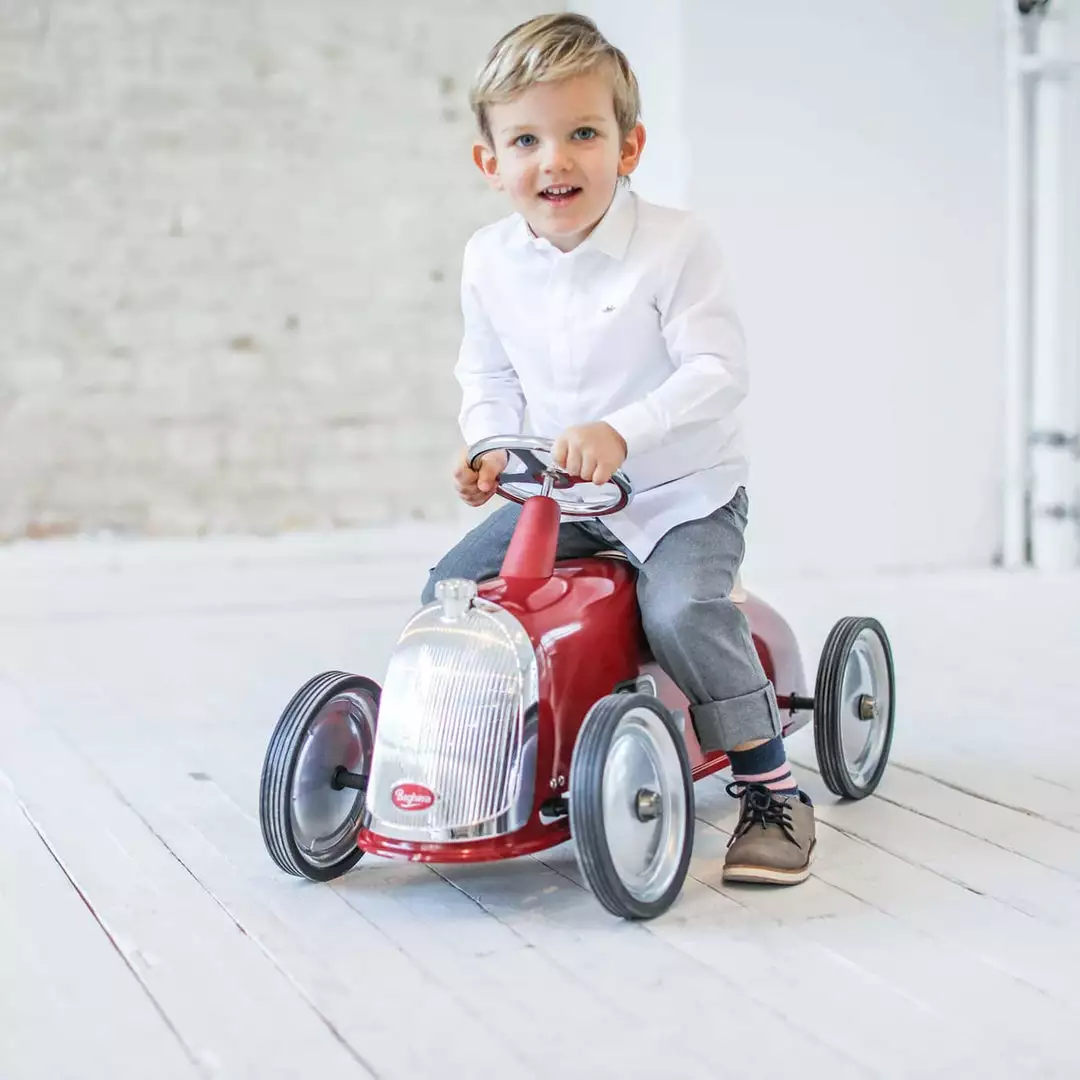 Baghera‘s beautiful vintage style Rider is the ultimate dream ride-on car for your mini motor enthuthiasts. With its shiny red metal body and smooth lines, it’s perfect for children 2 years + who love to adventure!