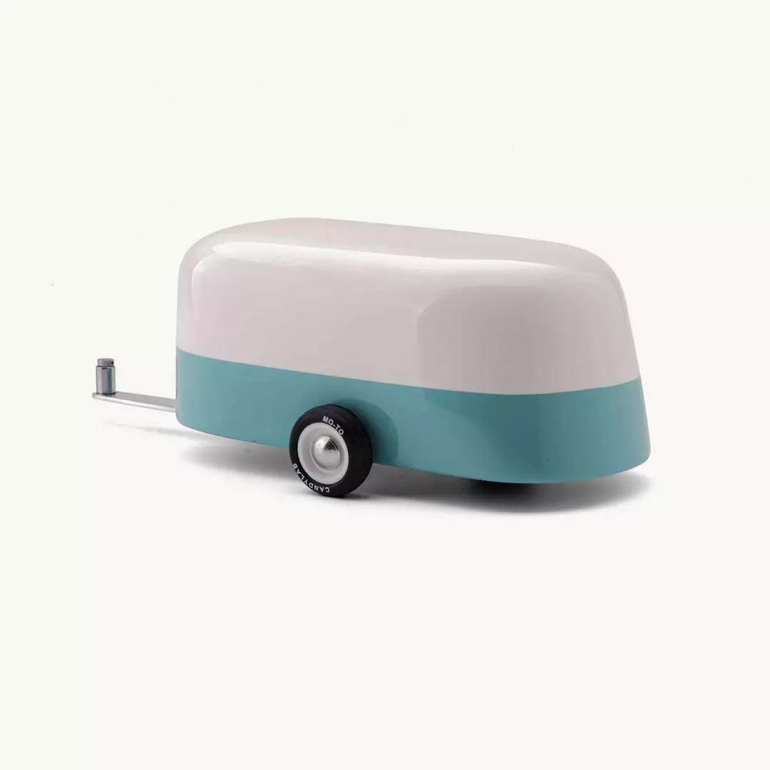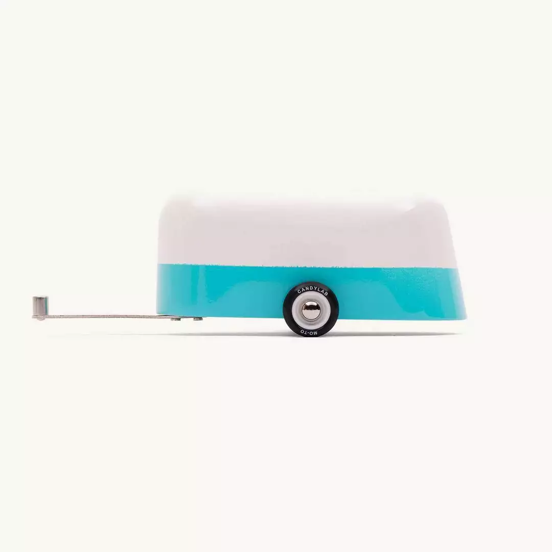 Blue Camper toy vehicle and collectable by Candylab Toys. This delightful toy camper is another classic from Candylab’s Americana range. When combined with the Woodie (sold separately), it makes for one of the most iconic automotive symbols of the American Golden Era. Magnetically attaches to compatible cars, including the Woodie and Pioneer!Â