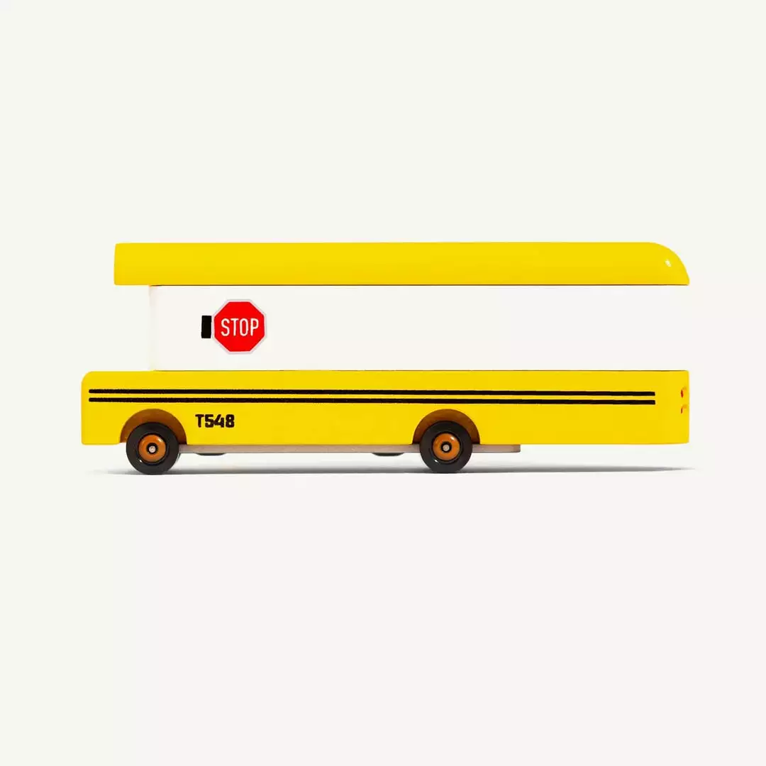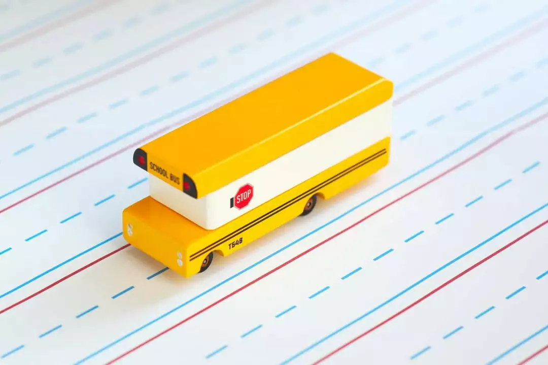 School Bus toy vehicle and collectable by Candylab Toys. Don’t sleep in, or you’ll miss the School Bus! (AKA the COOL Bus.) This big yellow bus is ready, bright and early to pick you up. We know that school looks a little bit different this year, and the School Bus might not be picking you up at your bus stop. So Candylab decided to bring the School Bus right to your door!