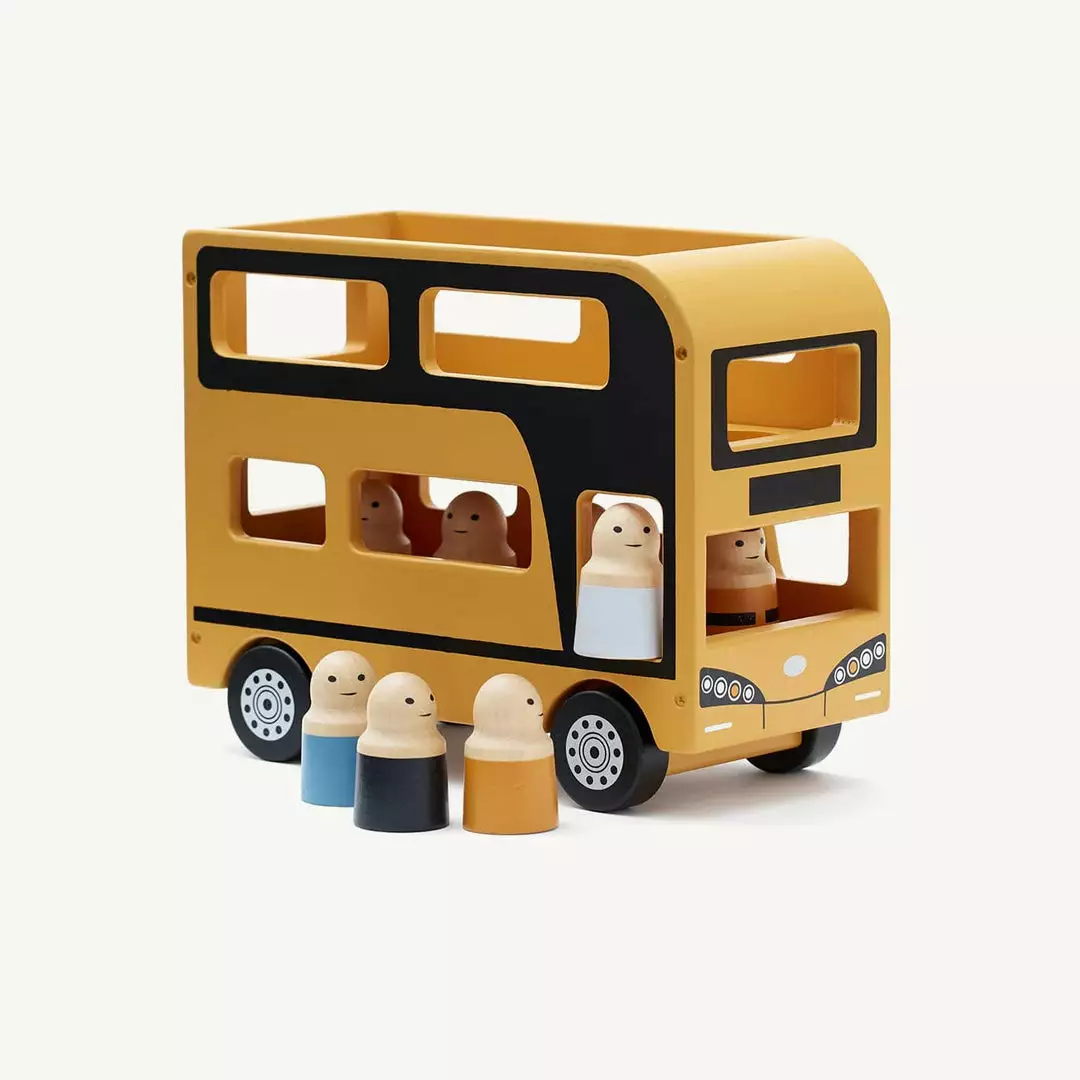 AIDEN Double Decker Bus by Kid’s Concept. Hop on board the Aiden Bus! It’s time to take a tour around the house and don’t forget to pick up your passengers along the way! Made in FSC-certified wood, the Bus comes with seven passengers and a bus driver. The floor of the top deck can be removed to take out the figures. The Aiden Double Decker Bus is perfect for kids who love pretend play and a great addition to other toy car play sets, including our Aiden 3 in One Service Center, Aiden 3 Level Garage, Aiden Garage and Aiden City Bus and Aiden City Play Rug!