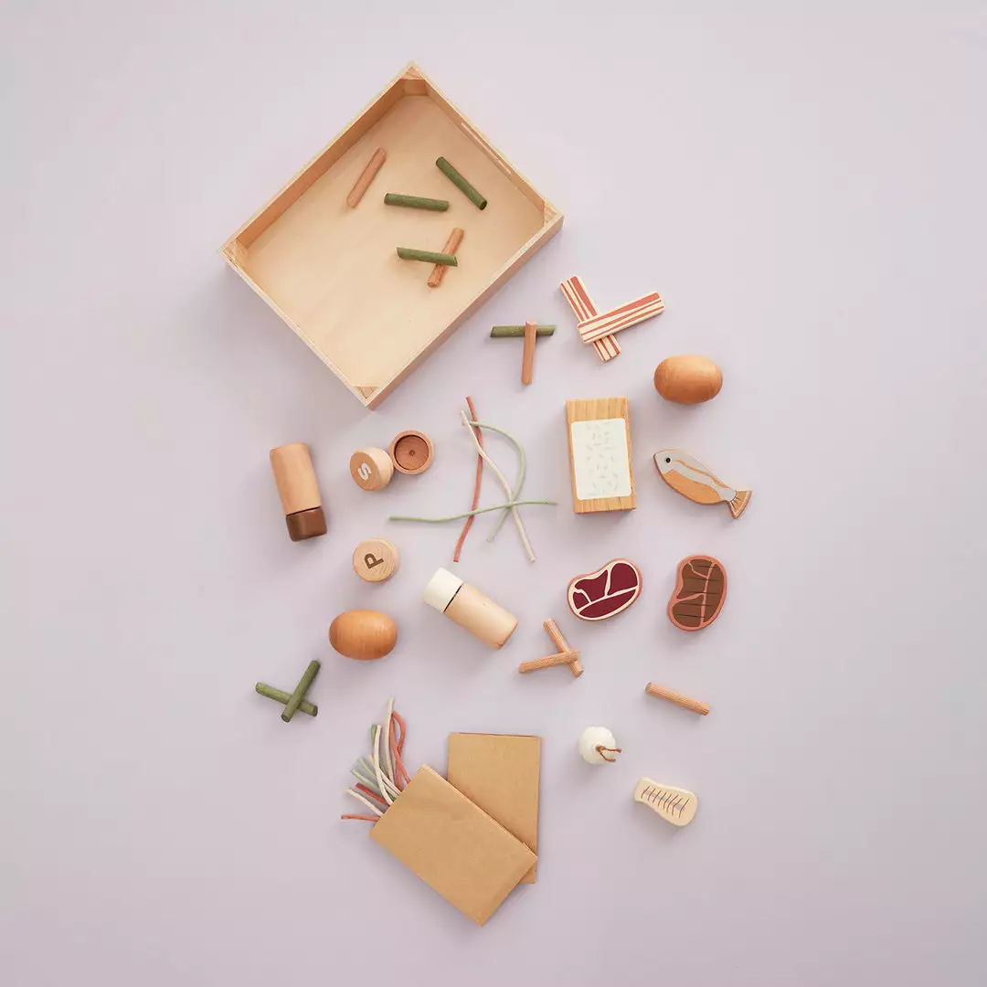 KID’S HUB Food Play Set by Kid’s Concept. This lovely wooden play set is perfect for playing restaurant, shop, and kitchen. Part of the new Kid’s Hub series which includes lots of amazing kitchen, cafe toys for hours of role play fun. Suitable for ages 3 years+
