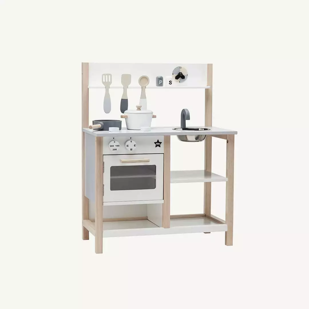 Wooden Play Kitchen by Kids Concept. Designed in Scandinavia and beautifully hand crafted in high quality wood, this lovely wooden play kitchen is perfect for your little chef or baker and will keep them entertained for hours.
