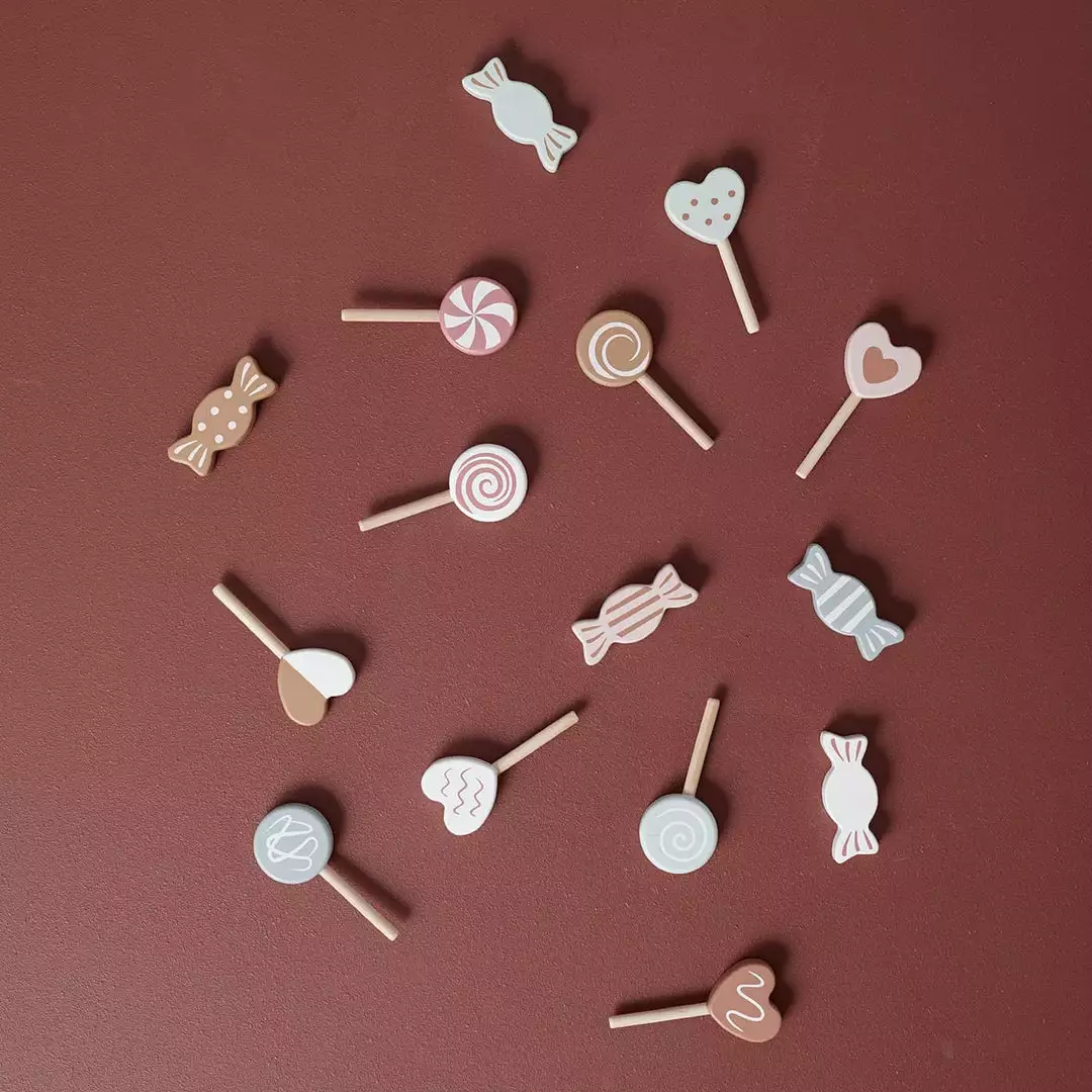- Wooden Candy Set with 15 Candy pieces