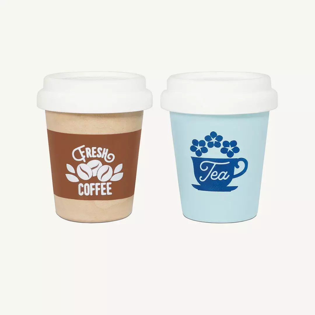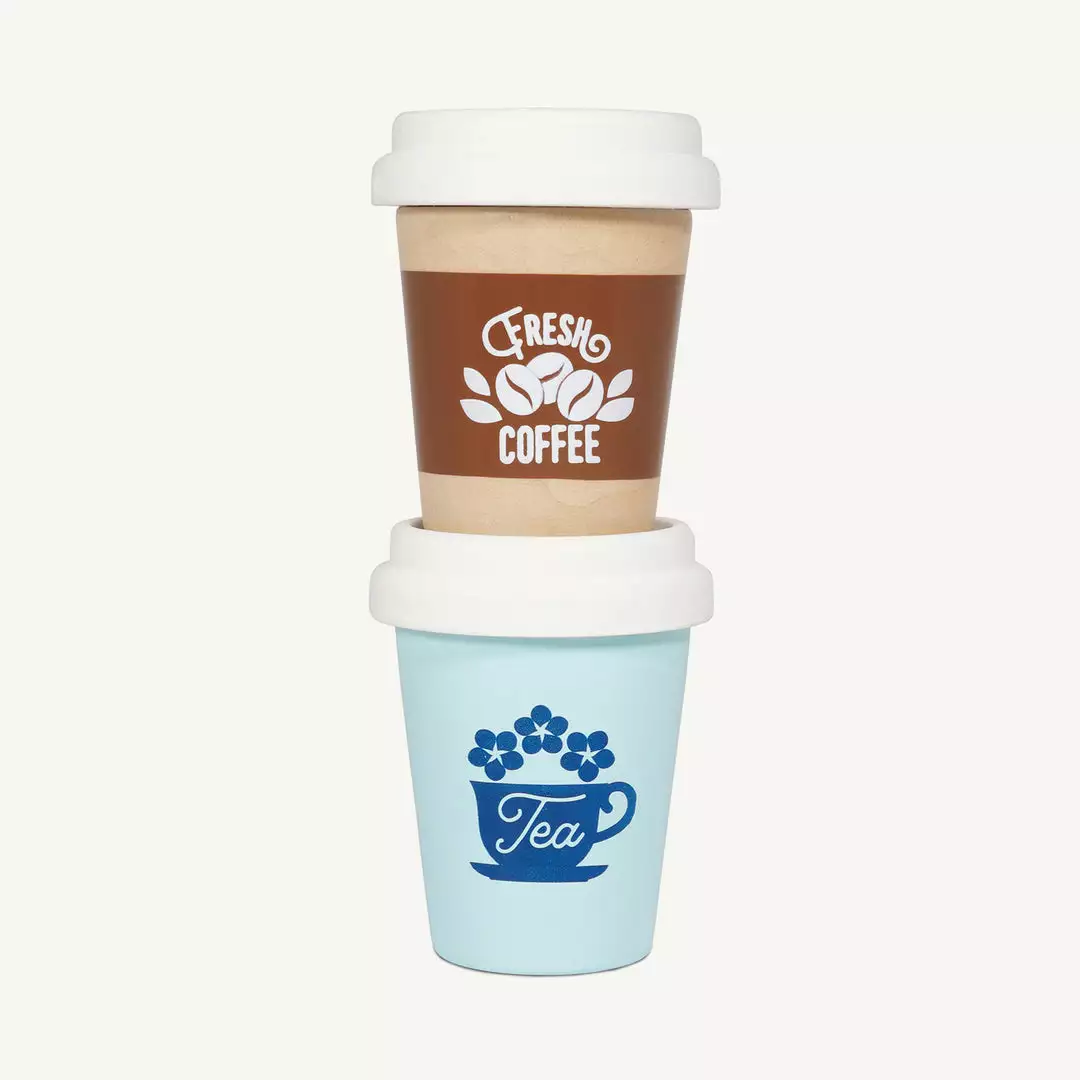 Honeybake Take Away Drinks by Le Toy Van. A pair of hot take away drinks – a tea and a coffee. This set is wonderfully versatile, with a gender-neutral design scaled perfectly to the extensive Le Toy Van Honeybake role-play collection. Plastic free, ethically made from sustainable wood and decorated in safe, water-based paints, this lovely play set a fantastic addition to our Le Toy Van Honeybake collection.