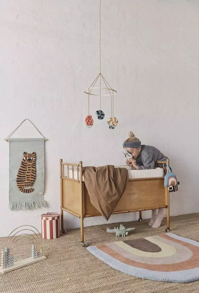 Lpllipop Mobile by OYOY. The OYOY Lollipop Baby Mobile is an adorable accessory for your child’s nursery and babies love waking up to the colourful lollipops. The mobile can be hung above a cot or changing station and is perfect for keeping babies entertained during nappy changes as well as developing their senses.Â