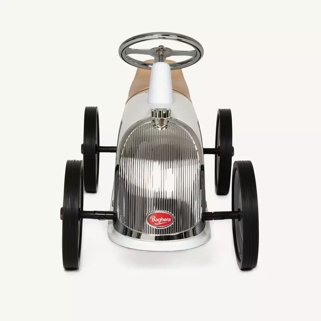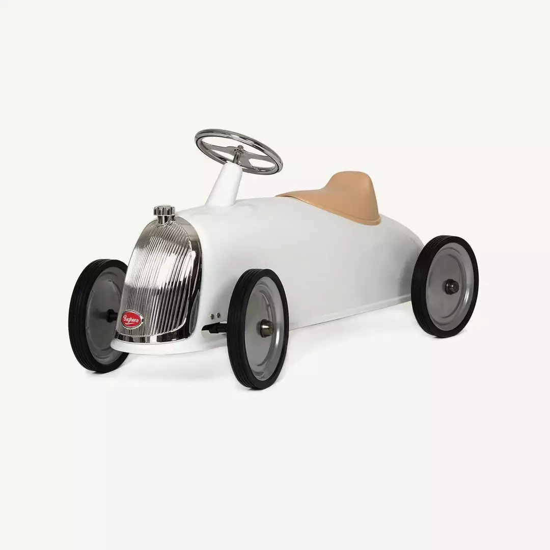 Baghera‘s beautiful vintage style Rider is the ultimate dream ride-on car for your mini motor enthusiasts. With its sleek white body and shiny features, it’s perfect for children 2 years + who love to adventure!