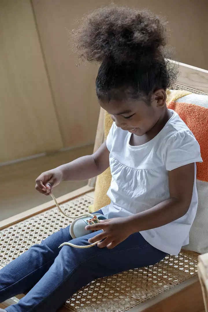 Tie Up Shoe Orchard Series. Learn how to tie your shoes! The laces on this wooden shoe can help little ones develop their hand-eye coordination and fine motor skills so they can tie their shoes on their own one day.