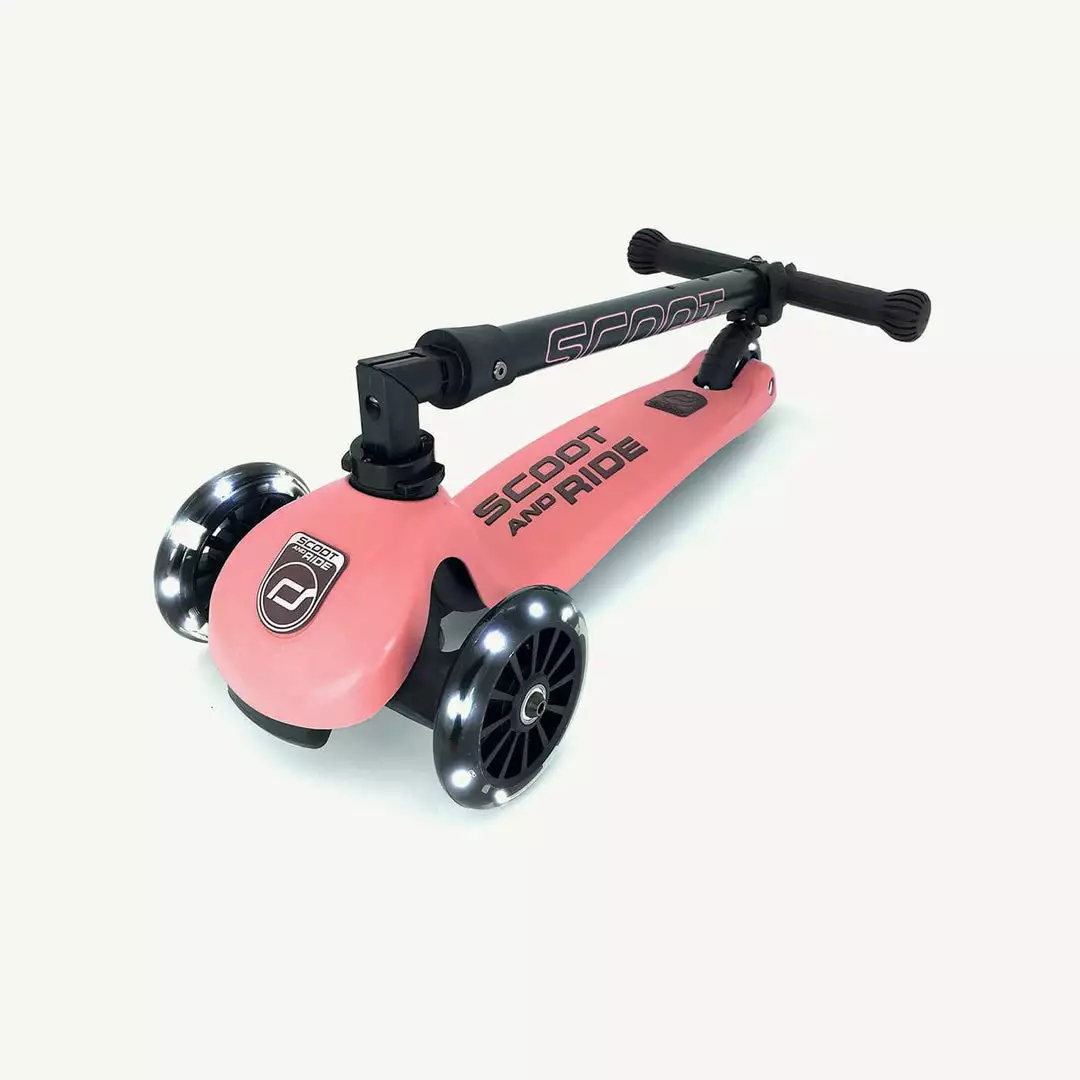 Scoot and Ride’s Highwaykick 3 LED is the perfect companion for children aged 3 to 6 years. With its white LED flashing lights and cool colours, it’s a big hit with kids and perfect for them visible on those darker evenings. The handlebar height is adjustable to grow with your child and can be folded away for easy transport, with no tools required. It also features Scoot and Ride’s unique front safety pad to minimise the possibility of tipping over.