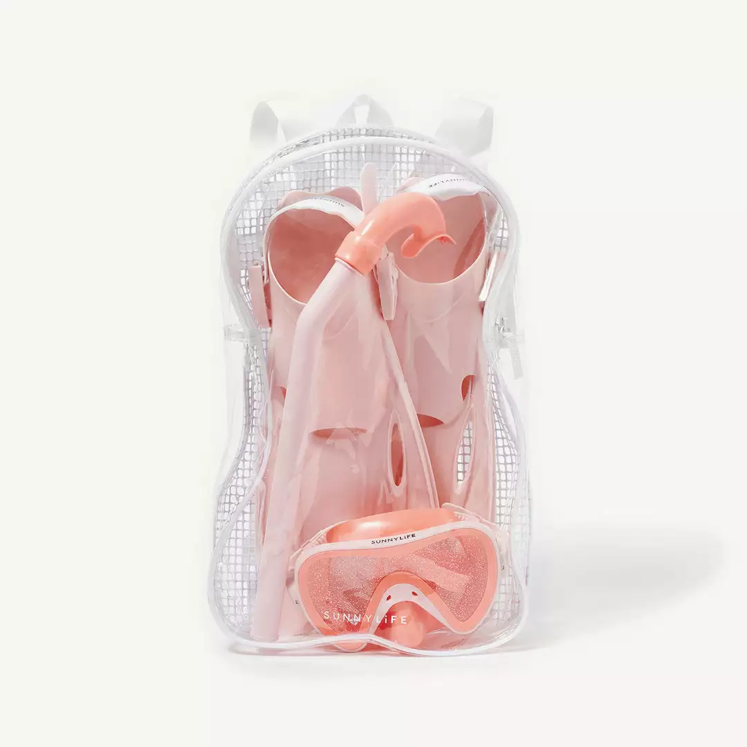 Dive Set Rose Marble by Sunnylife. Go ahead and jump right into pool time fun with Sunnnylife’s swimtime range. Deep dive into your best Summer yet with this fantastic mask, snorkel and flipper set. Perfect for hours of fun snorkelling, diving and exploring underwater life.