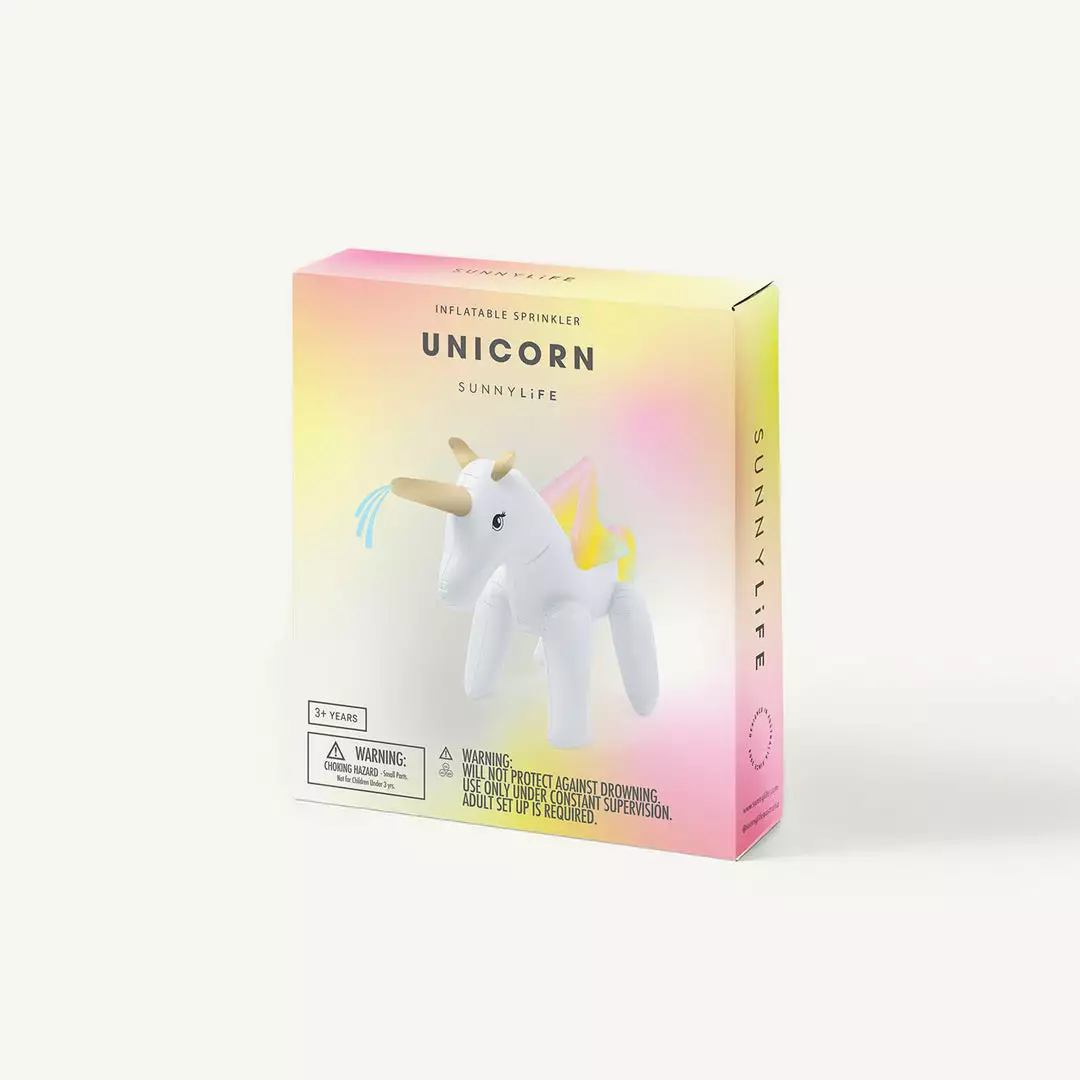 Inflatable Sprinkler Unicorn by Sunnylife. Make this Summer even more fun with the brilliant Inflatable Sprinkler Unicorn. Perfect for keeping cool on those warm sunny days, the Unicorn Sprinkler sprays water out of its horn. Hours of fun for the whole family!