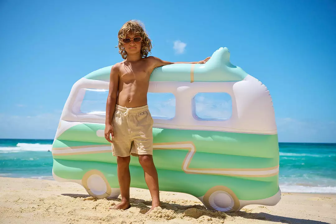 Lie-On Pool Float Campervan by Sunnylife. Ride to Paradise and make the sunny season one to remember with SUNNYLiFE’s Insta-famous floats. Inflate your Summer and take it to luxe level – lay back and relax with the Campervan Luxe Lie-On Float. Perfect for those warm sunny days at the Pool or Beach, Sunnylife’s Pool Floats are made from durable, non-toxic Phthalate free PVC. Recommended for adults and children age 6 years +.