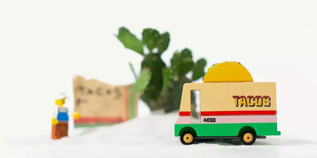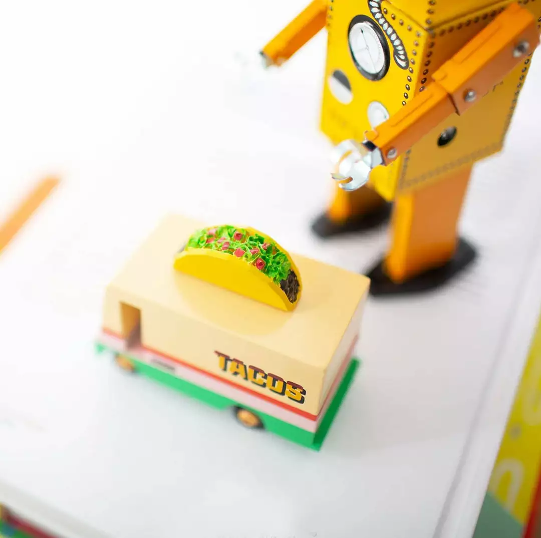 Candylab’s Taco Truck was inspired by the trailblazing spirit of the very first food trucks. Designed with true SoCal vibes in mind, it has fun and feisty coats of paint, some spanking orange wheels, and a terrific taco up top.